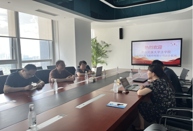 7月12日,法学院党委委员、副院长(主持工作)俞俊峰教授一行赴科大讯飞贵阳公司参加座谈会,并开展访企拓岗工作,法学院程南教授,组织员付中祥陪同参加。