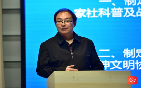 法学院副院长(主持工作)、教授、博士俞俊峰以《从科普条例贯彻看物质文明与精神文明协调发展》为题,通过回顾《贵州省社会科学普及条例》的制定、颁布和实施过程,解读了《条例》的贡献和历史意义,并倡导大家运用好《条例》,关注、参与社会科学普及。