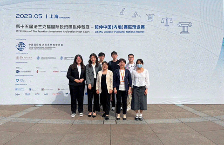 法学院国际法教研团队的宁红玲、吴永霞、林淳和杨敏四位老师的专业支持,外国语学院胡静老师也在百忙之中抽空为参赛团队进行现场英文模拟训练。