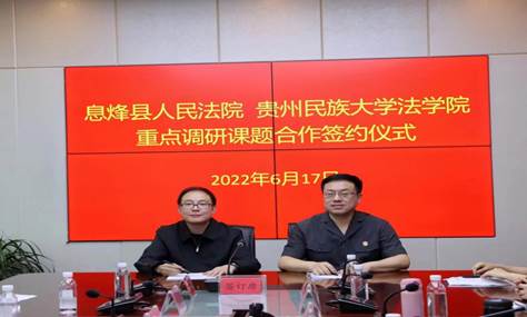 法学院与息烽县人民法院进行了课题签约。根据战略合作协议精神,双方将组织、互派具有高水平科研理论的教授、博士和具有丰富审判实务经验的法官建立课题研究组,开展为期6个月的课题研究。