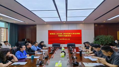 讲座结束后,双方于息烽县人民法院四楼会议室进行了党建交流座谈会。张红书记简要介绍了法学院党建工作开展情况并讲话,她表示,此次“五个一”活动是双方合作细化落实的具体体现,今后要进一步统筹推进,为双方党建合作搭建更好的平台;随后,杨晓智院长对息烽的红色旅游资源和红色党建的基本思路作了介绍,他表示,“五个一”活动必将推动双方更加深入的战略合作。