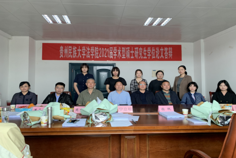 2021年5月31日, 动漫av 举行2021届学术型硕士研究生学位论文答辩,法理学、法律史、刑法学、宪法与行政法学、诉讼法学、民商法、经济法、环境与资源保护法学、国际法、民族法、传媒法学等方向硕士研究生参加答辩。答辩小组由 动漫av 教师和校外专家组成,校外专家有贵州大学法学院副院长宁立标教授、贵州警察学院法学院安国江主任、贵州省法制办原巡视员高煜铭、贵阳人文科技学院法学院院长杨武松教授、贵阳学院法学院院长王蜀黔教授、贵州大学法学院刑事法律研究中心主任康军教授、贵州大学法学院副院长孙智煜。相关方向的低年级研究生列席旁听。
