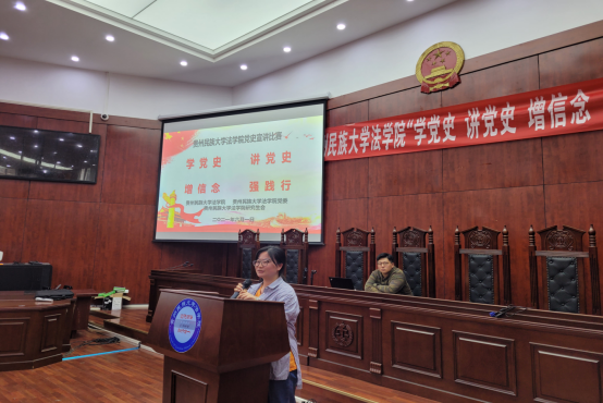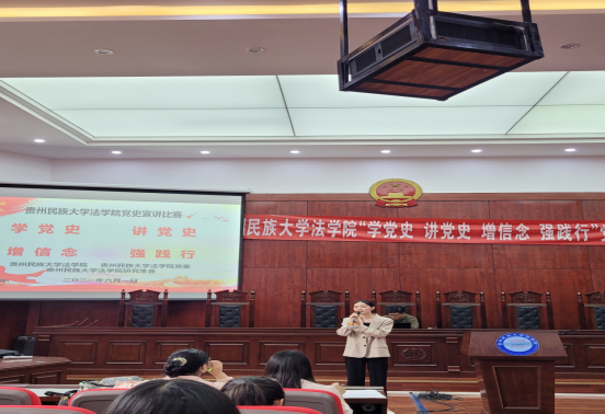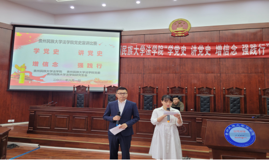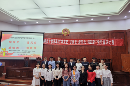 2021年6月1日,法学院“学党史讲党史增信念强践行”党史宣讲比赛在学院模拟法庭进行。法学院党委书记石世文同志出席,法学院杨轶、丁莲媛、高俊英、刘飞越老师担任评委。学生党员、学生干部、入党积极分子现场观赛。