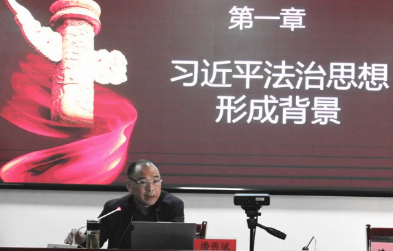 讲座中,潘善斌教授以扎实的理论功底、丰富的法务实践、通俗易懂的语言、旁征博引的史料和深入浅出的讲述,深度解读了习近平法治思想形成背景、重要地位、核心要义及重要意义,系统阐释了新时代为什么实行全面依法治国、怎样实行全面依法治国等重大理论和实践问题。