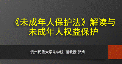 讲座结合热点案例、典型案例,深度解读国家在保护未成年人方面尤其是涉及中小学未成年人保护的新举措和新规则;突出了党的十八大以来,以习近平同志为核心的党中央对完善未成年人保护相关法律制度、改进未成年人保护工作的重要指示和决策部署;介绍了《中华人民共和国未成年人保护法》(2020修订)出台前后国家司法部门和贵州省在未成年人保护方面已经出台和将要实施的相关规范性文件。 讲座持续两个小时,气氛热烈,很多学员向郭 婧副教授提问、交流。