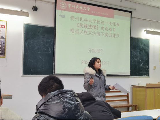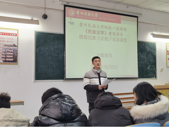 民族法学课程是校级一流课程和校级课程思政试点。依托贵州省人文社科示范基地——贵州地方法治智库,参立法活动及评审,民族法学课程建设负责人傅智文老师在课程中开展模拟自治立法讨论教学改革探索。