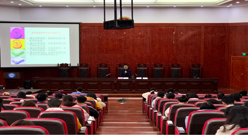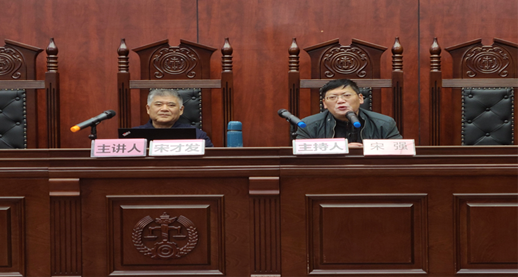 特聘教授、中国法学会民族法学研究会秘书长、博士生导师宋才发教授在模拟法庭作“文科教师和研究生必须掌握调查研究的基本功”专题讲座。讲座由法学院宋强院长主持,法学院部分博士研究生和硕士研究生到场聆听。