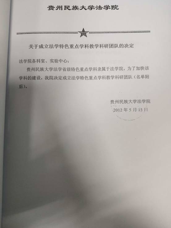 关于成立法学特色重点学科教学科研团队的决定