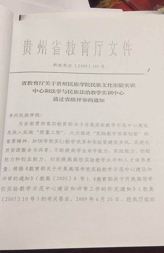 省教育厅关于贵州民族学院民族文化实验实训中心和法学与民族法治教学实训中心通过省级评审的通知