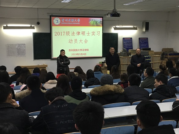 3月4日上午10:30,法学院在12-102教室召开了实习动员大会,法学院院长宋强教授、党委书记盘淼教授、副院长张帆教授出席了大会,以及2017级法律硕士全体同学参加了大会。大会由副院长张帆主持。