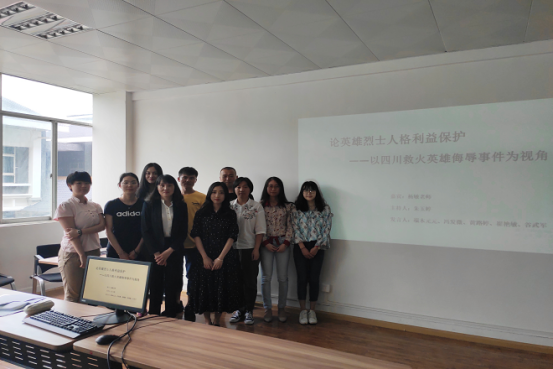 法学院主办,法学院研究生会、2018级法律硕士一班承办的主题为“论英雄烈士人格利益保护——以四川救火英雄侮辱事件为视角”的“法学沙龙”学术活动,于2019年4月24日下午14:00在法学院第五研讨室开展。法学院杨敏副教授以及部分学生参加此次活动。