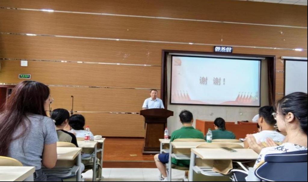 最后,柏云兴书记为新生讲开学第一课,带领学生学习党的二十大精神和党的二十届三中全会精神,交流学习心得体会。他从“坚定理想信念、筑牢思想根基、保持底线思维”三个维度,引导学生加强理论武装,增强政治定力,在学思用贯通中衷心拥护“两个确立”、在知信行合一中忠诚践行“两个维护”;引领学生坚持用习近平新时代中国特色社会主义思想武装头脑,学思践悟、真信笃行,锤炼忠诚干净担当的政治品格;教导学生坚持诚实守信,学会尊重他人,自觉遵守规则,明确学习目标,常怀感恩之心,厚植家国情怀,培养奋斗精神,树立健康理念,增强综合素质,把“小我”的人生目标、职业选择融入祖国的“大我”之中,以大视野、大格局、大境界去谱写未来事业发展新篇章,做一名真正能让母校为其自豪和骄傲的优秀学生!