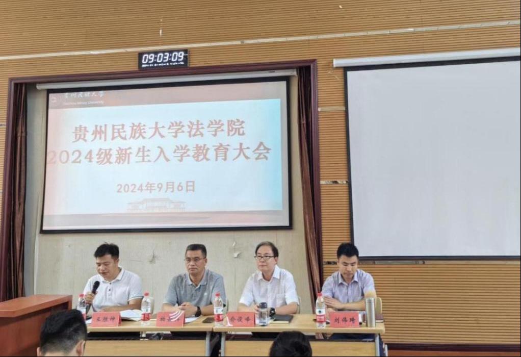 又到金秋开学季,为帮助学院2024级新生尽快适应大学生活、做好学业规划。9月6日上午,法学院师生在一楼学术报告厅召开2024级新生入学教育大会。法学院党委书记柏云兴、副院长(主持工作)俞俊峰、副院长刘伟琦、各科室负责人、政治辅导员、新生班班主任以及2024级全体新生参加。会议由法学院党委副书记王胜坤主持。