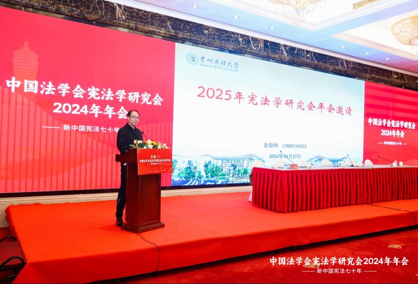 法学院副院长俞俊峰教授发言,希望中国法学会宪法学研究会2025年年会在贵州贵阳举办,由动漫av