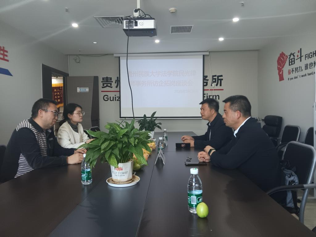 为深入贯彻落实党中央、国务院决策部署,实施“2025届全国普通高校毕业生就业创业促进和服务体系建设行动”,全力促进高校毕业生高质量充分就业,加快推进2025届高校毕业生就业进程。根据学校工作要求,3月26日,法学院党委书记柏云兴一行走访贵州民光律师事务所。