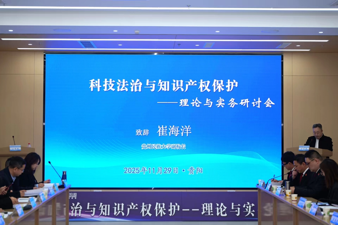 法学院、贵阳知识产权法庭、贵州省法学会法学教育研究会、贵州省法学会知识产权法学研究会联合承办,贵阳市律师协会、贵州商学院知识产权研究院协办的“科技法治与知识产权保护——理论与实务研讨会”在贵阳知识产权法庭召开。来自全国多所高校、科研机构、司法机关及实务部门的专家学者齐聚一堂,围绕科技法治与知识产权保护的理论前沿与实务热点展开深入交流。