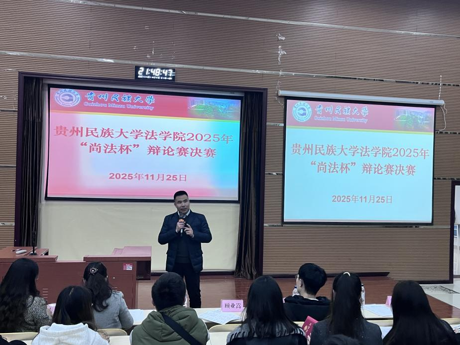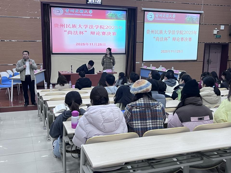 11月25日,法学院“尚法杯”辩论赛决赛在学院一楼101学术报告厅圆满收官。此次活动作为学院深耕法学实践教育、锻造法治人才的核心赛事,延续了“崇德尚法、知行合一”的精神内核,本科生组与研究生组同时展开决赛对决,晋级队伍围绕四大焦点法律议题展开巅峰对垒,用思想的碰撞点燃法治热情,以精湛的辩才诠释法学担当。此次决赛邀请了兼具深厚理论知识体系和丰富实践经验的老师和优秀辩手组成评委团,为此次辩论赛提供专业的指导。